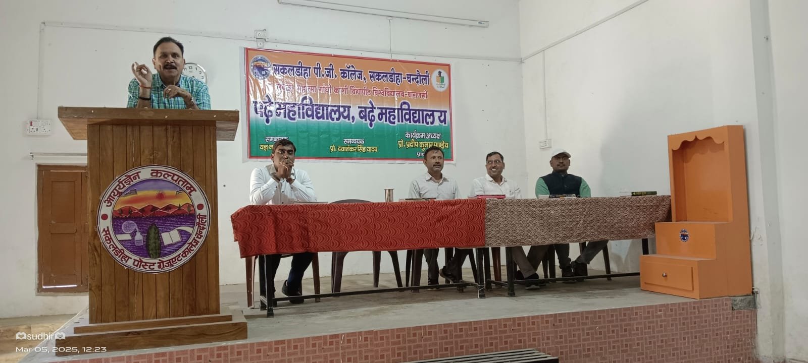 सकलडीहा। सकलडीहा पीजी कॉलेज  में बुधवार को पढ़े महाविद्यालय बढ़े महाविद्यालय  कार्यक्रम का आयोजन किया गया। कार्यक्रम में महाविद्यालय के प्राचार्य प्रो.प्रदीप कुमार पाण्डेय ने भारत को विश्व गुरू बनाने को लेकर विस्तार से चर्चा किया। इस मौके पर विद्यालय के शिक्षक सहित छात्र मौजूद रहे।