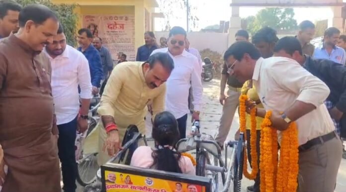 विधायक सुशील सिंह ने कहा कि केन्द्र और प्रदेश की सरकार लगातार दिव्यांजनों की सेवा और सहयोग के लिये तत्पर है। यह उनके संवेदनशीलता को दिखाता है। उन्होंने कहा कि प्रधानमंत्री नरेंद्र मोदी और मुख्यमंत्री योगी आदित्यनाथ के नेतृत्व में जिले में करोड़ों रूपये खर्च करके विद्यालय और हास्टल की सुविधा शुरू किया गया है।सरकार दिव्यांगजनों को पेंशन योजना,कृत्रिम अंग सहायक उपकरण अनुदान योजना,दिब्याग शादी अनुदान योजना,दुकान निर्माण व संचालन योजना सहित विभिन्न अन्य योजनाए चलाकर लाभान्वित कर रही है। वही ब्लाक प्रमुख अवधेश सिंह ने कहा कि भाजपा सरकार हर वर्ग के विकास के लिए कृत संकल्पित है। हर पात्र और जरूरतमंद व्यक्ति को लाभांवित करना सरकार का संकल्प है।आज यह ट्राई साइकिल वितरण योजना उसी का हिस्सा है। उन्होंने दिव्यांगों को ट्राई साइकिल के साथ माला पहनाकर विदा किया। इस मौके पर ब्लाक प्रमुख अवधेश सिंह,दिब्यागजन सशक्तिकरण अधिकारी राजेश कुमार नायक,बीडीओ विजय कुमार सिंह,एडीओ आईएसबी हवलदार यादव, पवन दूबे सहित अन्य अधिकारी और कर्मचारी मौजूद रहे।