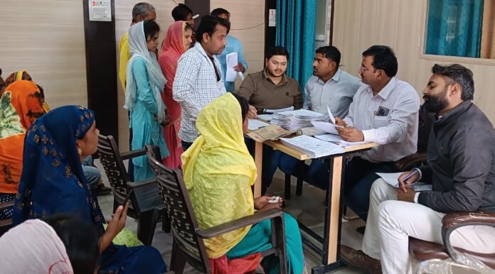 सकलडीहा ब्लॉक मुख्यालय पर बीडीओ विजय कुमार सिंह लाभार्थियों की अभिलेखों की जांच पड़ताल करते हुए